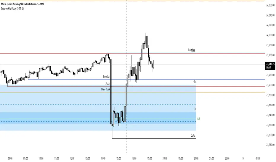 OverviewThis indicator tracks and displays the highest high and lowest low of the three major trading sessions (Asia, London, and New York). It draws horizontal lines on the chart to represent these key price levels.