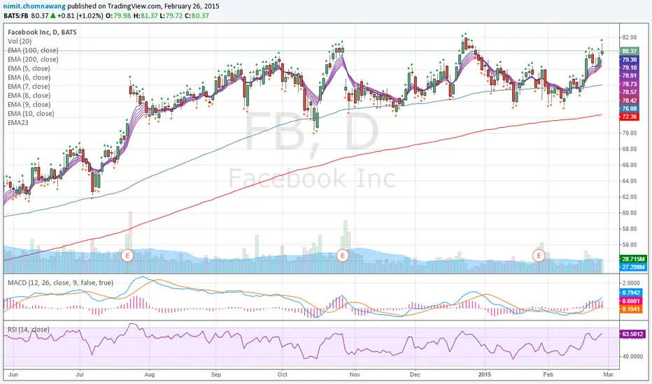 Show a green up-triangle when EMA(2,close) > EMA(3,close) and a red down-triangle when EMA(2,close) <= EMA(3,close).