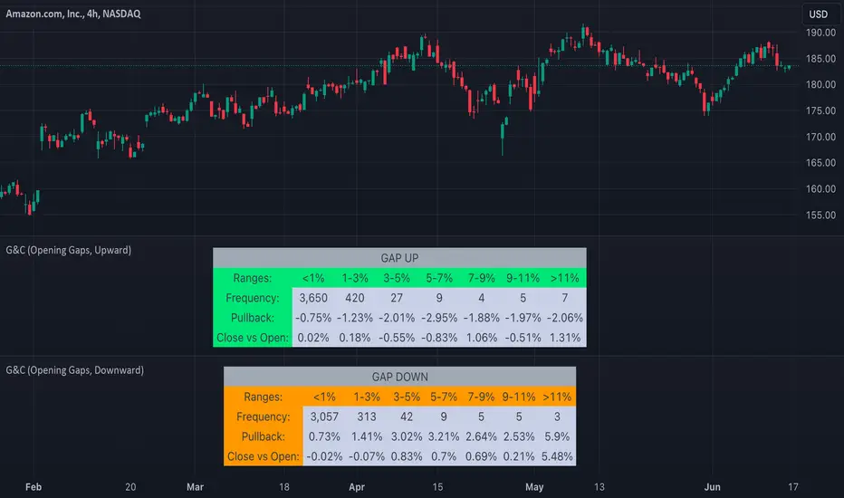 This script offers users the choice to analyze "Opening Gaps" or "Extreme Closes" for price movements of different predefined magnitudes in a specified direction ("Upward" or "Downward").