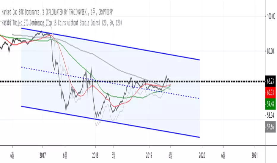 This indicator is to show the valid and correct bitcoin dominance among the top 15 coins except stable coins.