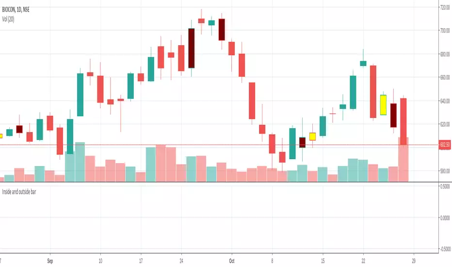 Makes a candle yellow if it is inside bar and maroon if it is outside bar