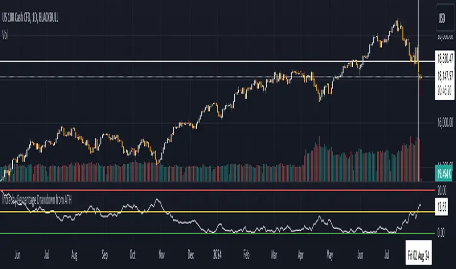 This script will display the percentage drawdown along with reference lines at 20% (recession), 10% (correction), and 0% (all-time high).