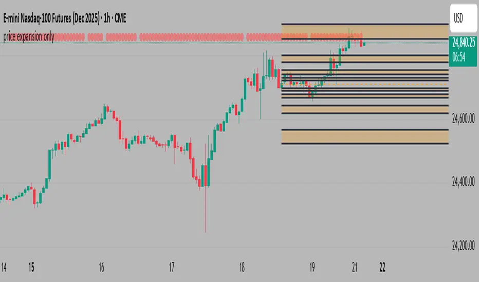 • Empty spaces indicate: Areas where price closed past the highest/lowest zone or where zone invalidation occurred