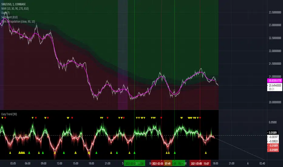 When the trendline is green, this is a bullish zone. When the trendline is red, this is a bearish zone.