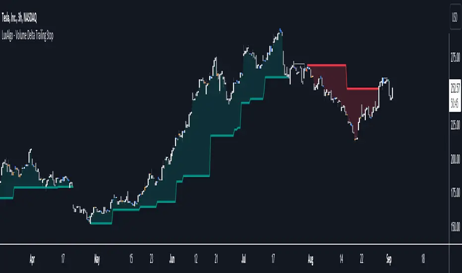 The 'Volume Delta Trailing Stop' indicator uses Lower Time Frame (LTF) volume delta data which can provide potential entries together with a Volume-Delta based Trailing Stop-line.