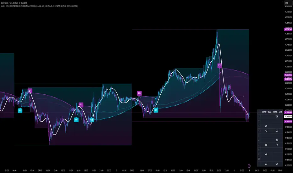 🔥Super curved trend session forecast [CLEVER] is not just another trend indicator — it’s a high-precision forecasting system engineered to decode how long trends truly last, how strong they are, and when they are most likely to fade away.