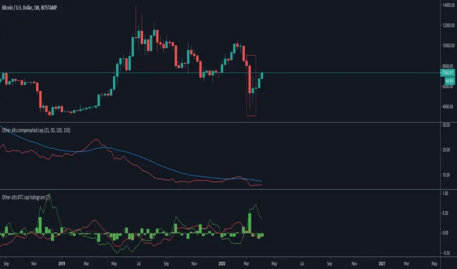 This study is intented to be used in combination with my other study "Other alts compensated cap". Read its description, in particular, it's rationale, to understand why I have removed the big capitalized altcoins from these studies.