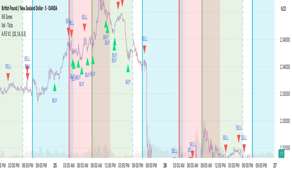 This script is a 2-candle reversal signal indicator that tries to catch sharp turns after an extreme high/low, with an optional ATR (volatility) filter. It then plots BUY/SELL triangles and can trigger alerts.