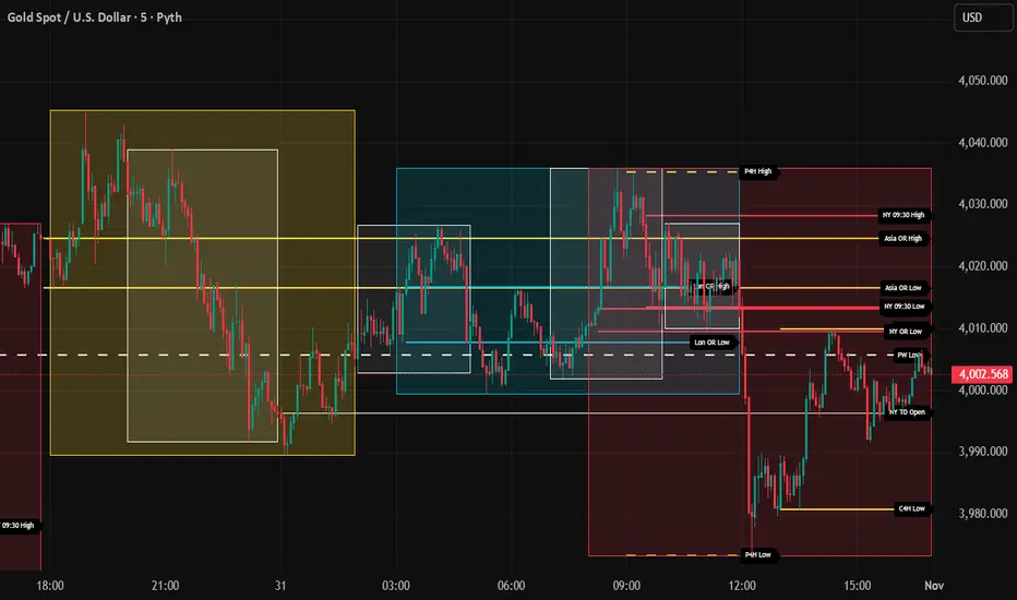 This makes it easy to see when price is trading inside a high-probability delivery period, so you can line it up with liquidity above/below the session or OR.