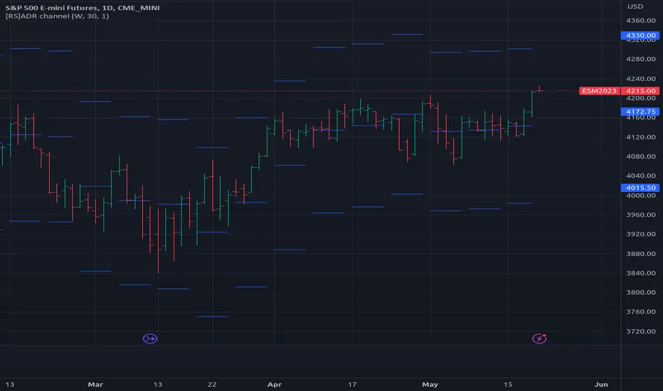 Update for V5:Average Day Range Channel with optional timeframe component. The Channel can be used as a visual tool overlayed on a security to identify price movements near exhaustion or identify trends and help determine potential volatility