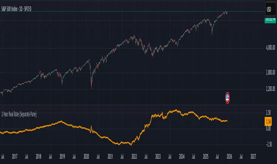 The 2-year real rate is the inflation-adjusted yield on a 2-year U.S. Treasury—essentially the market’s expectation for short-term “true” interest rates after subtracting expected inflation (often approximated as nominal 2Y yield – breakeven inflation).