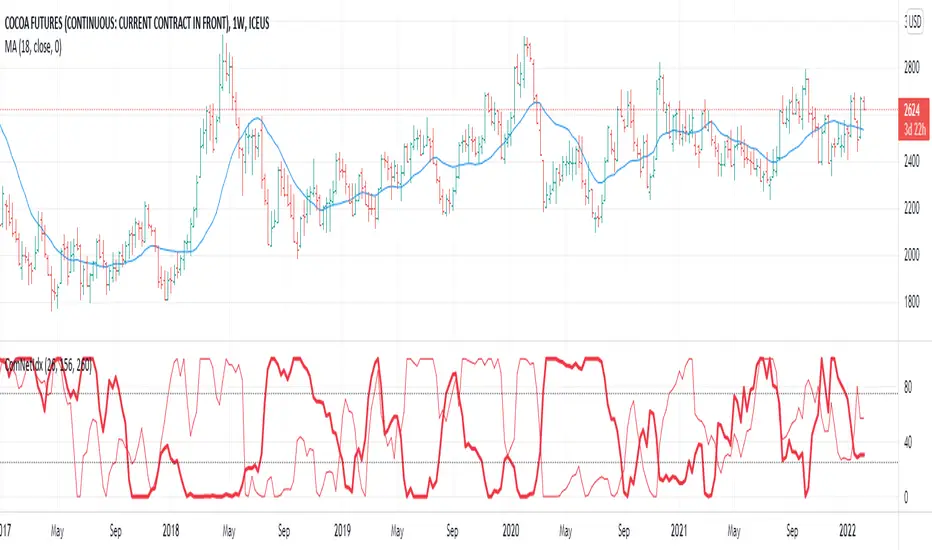 This script takes the hedger (commercial short) from the COT report and normalize the chart for configurable time frames (e.g. 26 weeks, 152 weeks and 260 weeks).