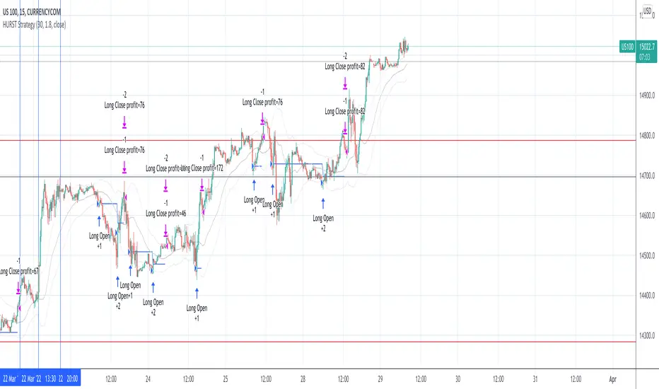 Strategy based on Hurst channel with loss averaging when an open position is below 0.5 channel range.