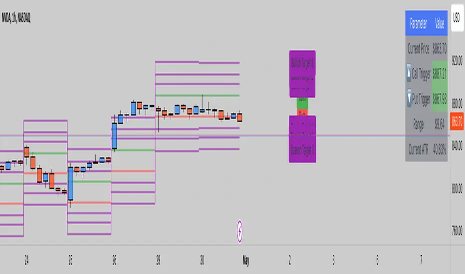 The indicator adds text labels to indicate whether the levels are for "Puts" or "Calls" on the trigger levels, and "Target 1" or "Target 2" on the ATR target levels.