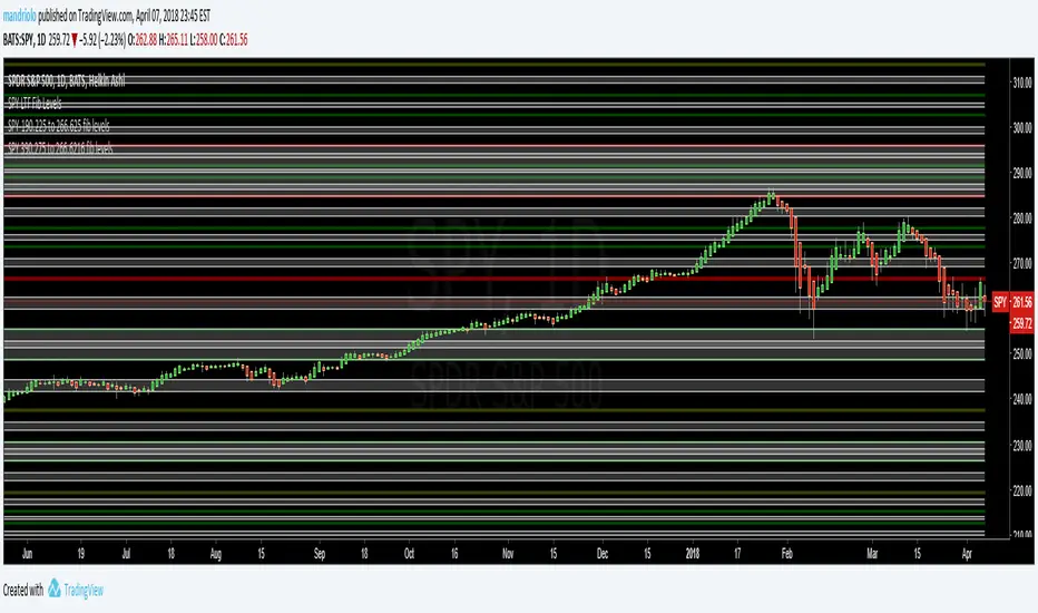 This is a Shorter Time Frame Fib level indicator. To be used with Longer Time frame Indicator. Though it can be used independently. It shows where the market is looking to go and where it has been. When the market get above one level ( white bar, for example) look for price action to continue to the next level. If it breaks below the white bar look for price action to go the next level below for support. It is fractal in nature. It is fib levels inside longer time frame fib levels. I hope it will impress! It is great for having targets and support levels. It helps in knowing why the market may continue in a direction. For example: When the price action has already moved up, why does it keep going up, because it hasn't reached targeted fib level, yet. Same reason price action may move lower once it breaks a particular level. It is looking for its fib level support.