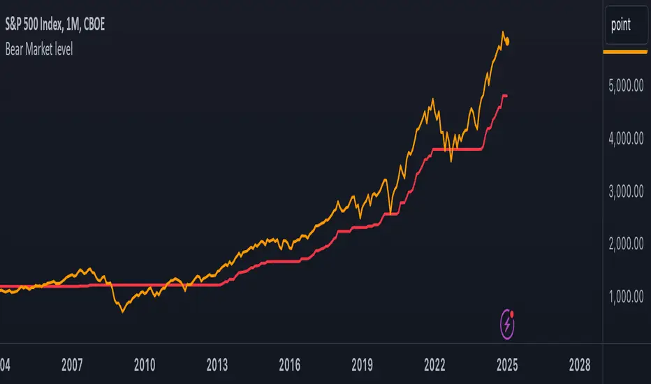 Marks the bear market level. Calculated as 20% drop from highs. Useful on indices to determine technical Bull or Bear markets.