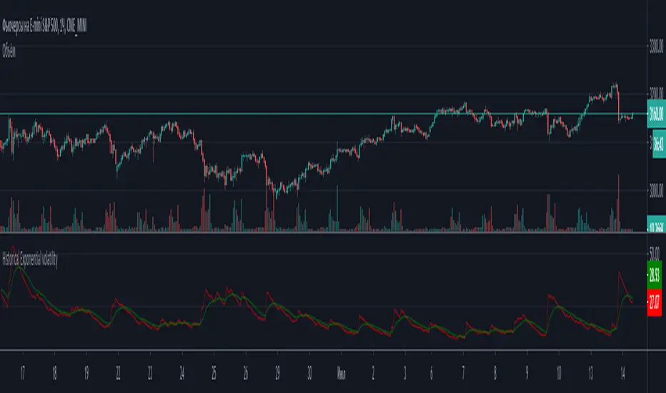 Индикатор исторической волатильности по экспоненциальной модели с дополнительной скользящей средней. Оптимизирован под фьючерсы CME , NYMEX
