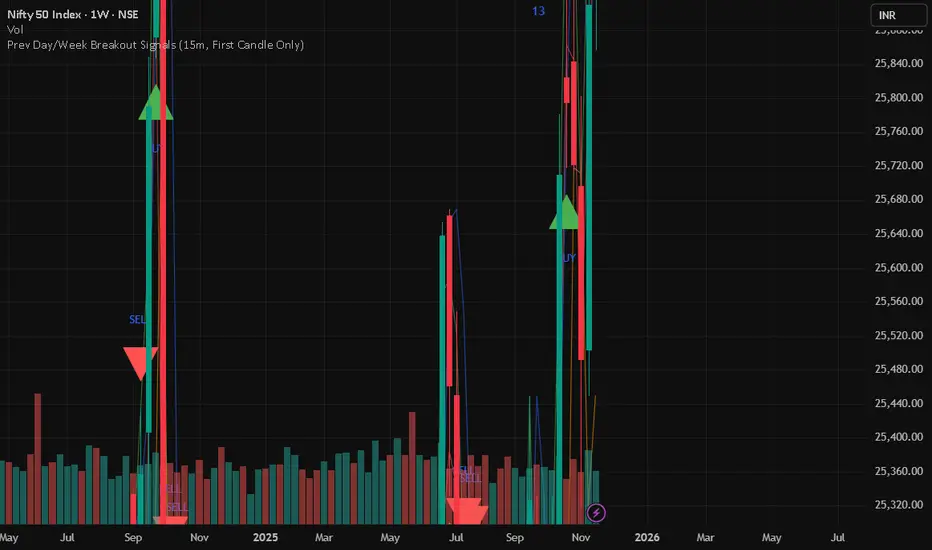 Prev Day/Week Breakout Signals (15m, First Candle Only)- For taking break out entries