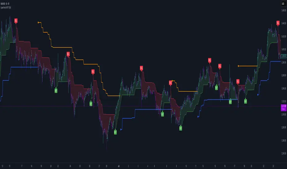 There is an option for Higher Tİme Frame Period. if you choose "Auto" then Higher Time Frame calculation would be made by script.