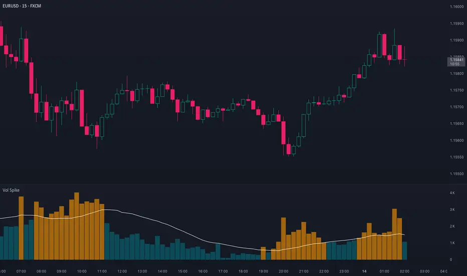 - Applies distinct colors to spike and baseline volume columns to highlight deviations.