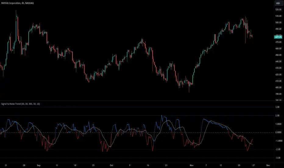 The Standard deviations help find extreme levels of signal and noise. If the noise reaches the standard deviation of -3 then that means that there is a extreme negative deviation from the mean, and this would be a rare occurrence, with a lot of noise. This could indicate a potential reversion in market states, and could be followed by a trending move.