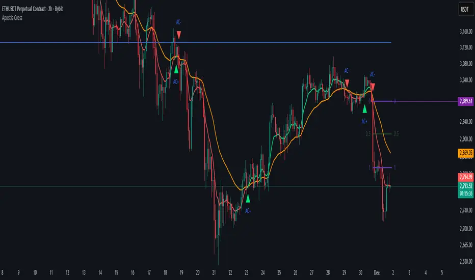 When the 4ema8 crosses above the 4ema26 it flashes a Bullish momentum marking CA+ on the cross.