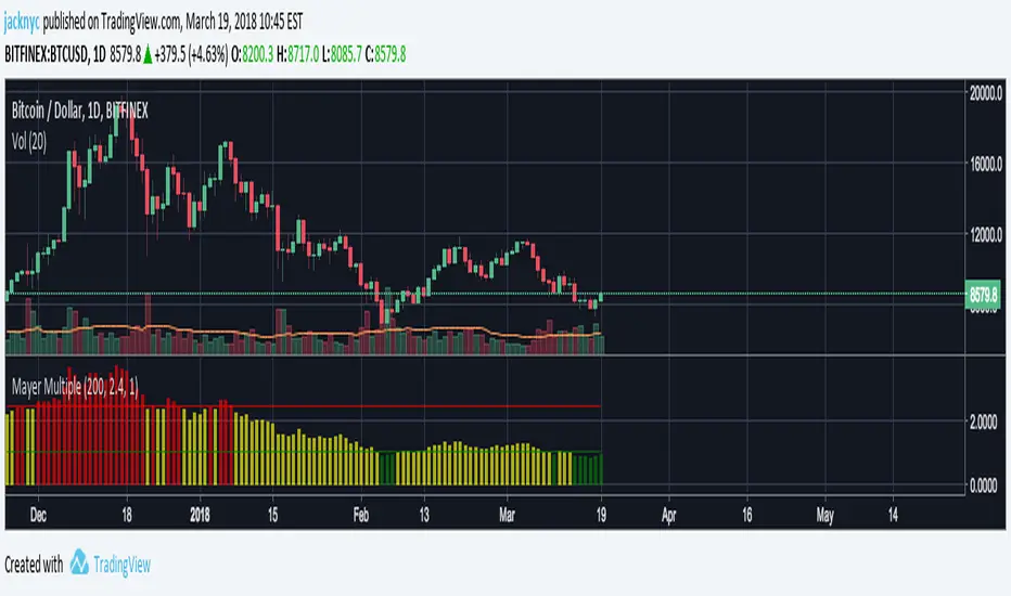 I created this script so you can see the daily Mayer Multiple by just hovering over the bar in the histogram. I modified the color of the histogram bar to indicate the following: