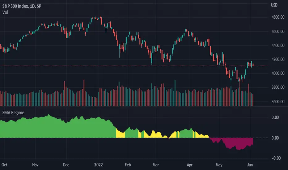 Provides a color coded indicator based upon both the slope of a moving average of choice, and the asset's position in relation to that moving average. If the specified moving average is downward sloping and the asset closes below the moving average the indicator will be red. If the specified moving average is upward sloping and the asset closes above the moving average the indicator will be green. Any other combination of these two factors will color the indicator yellow indicating indecision.