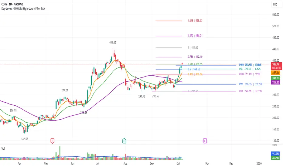 🧭 Key-Levels – D/W/M High-Low + Fibonacci + Moving Averages
