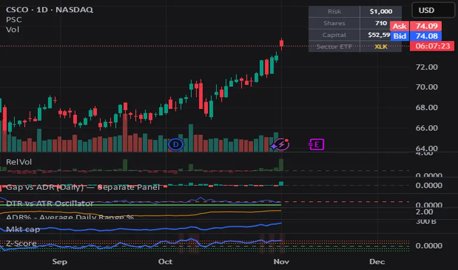 Use ATR for gap-aware sizing; ADR for a simpler range. Adjust period to fit your stop style (shorter = more responsive). PSC is display-only (no orders), works on any symbol/timeframe, and updates on the latest bar.