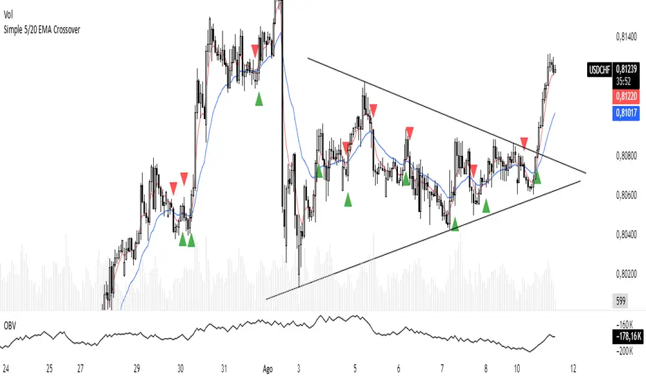 This script is designed to track one of the most popular moving average strategies: the crossover between the 5-period and 20-period Exponential Moving Averages (EMA). It's a clean and straightforward tool for identifying potential shifts in short-term trend momentum.