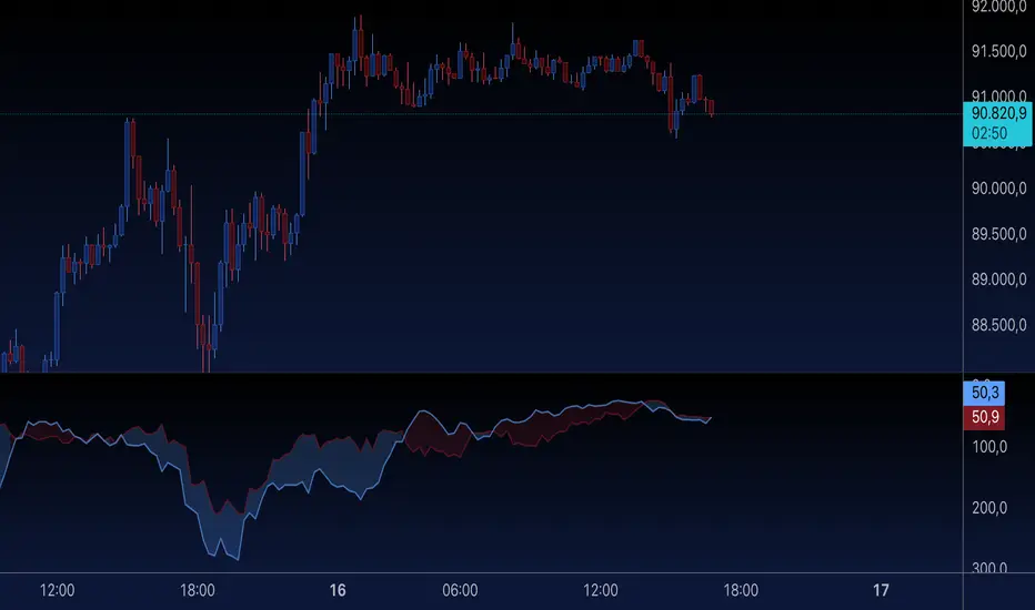 Red Fill (Lower Trend Dominance): Indicates stronger rejection at lower prices, suggesting bullish sentiment.