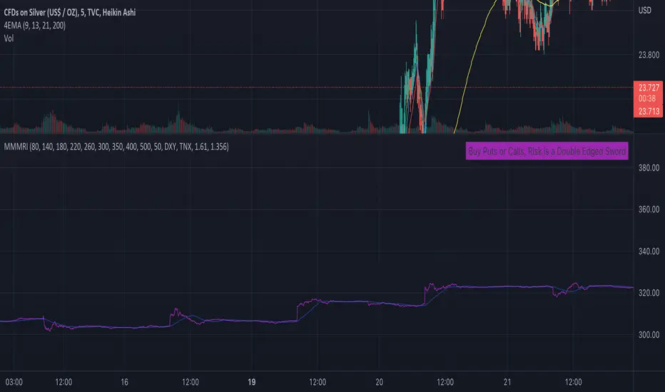 i was unable to find an accurate enough indicator for debt to gdp ratio. the Fred indicator understates the number. so when you want the current mmmri, youll have to manually change the number for the Debt to gdp ratio in the settings of the indicator,(the multiplier). it also depends on where you get your debt/gdp ratio from. i use the debt clock website for total Debt to gdp ratio which they have currently at the time of writing at 141.88%. ill update it once a week or month to give it more accuracy over the long run.Sürüm Notları