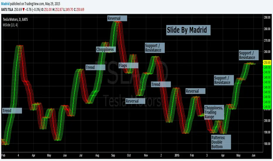 This study shows the linear regression in a way to easily spot trends, S/R levels, reversals, choppiness, trading ranges, patterns, flags.