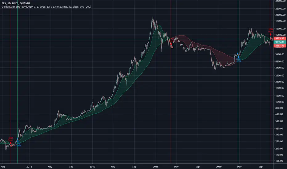 This is a Strategy version of my Golden X/Death X indicator.