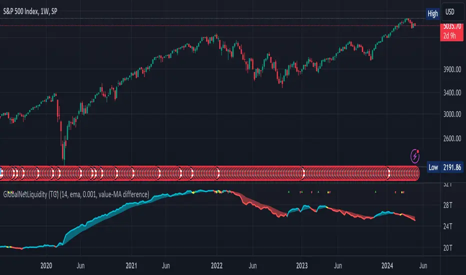 This indicator is a remix of Dharmatech's, who authored the first this Global Net Liquidity equation, kudos to them! Please show them some love if you like this indicator!