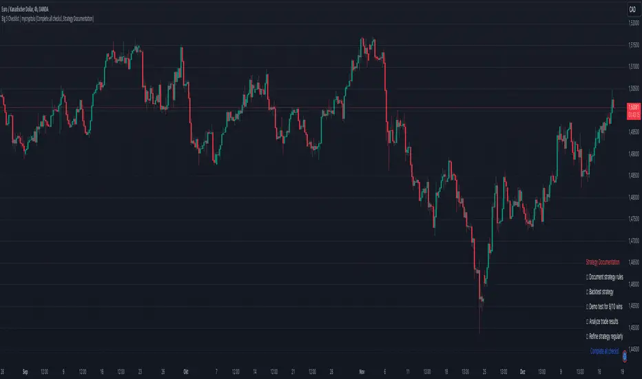 The Big 5 Checklist | XEONEDIA indicator is a powerful trading tool designed to help traders prepare their trading decisions in a structured and effective manner. The indicator encompasses five key areas: