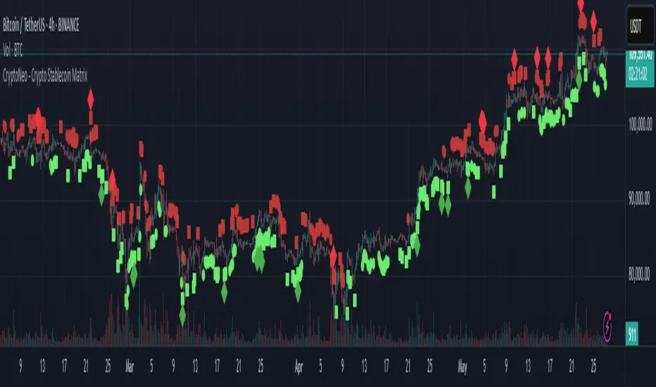 Originally derived from a suite of alpha signals developed for a systematic crypto trading algorithm, this indicator compresses advanced stablecoin flow analytics into a clear and intuitive visual format — designed specifically for discretionary traders.