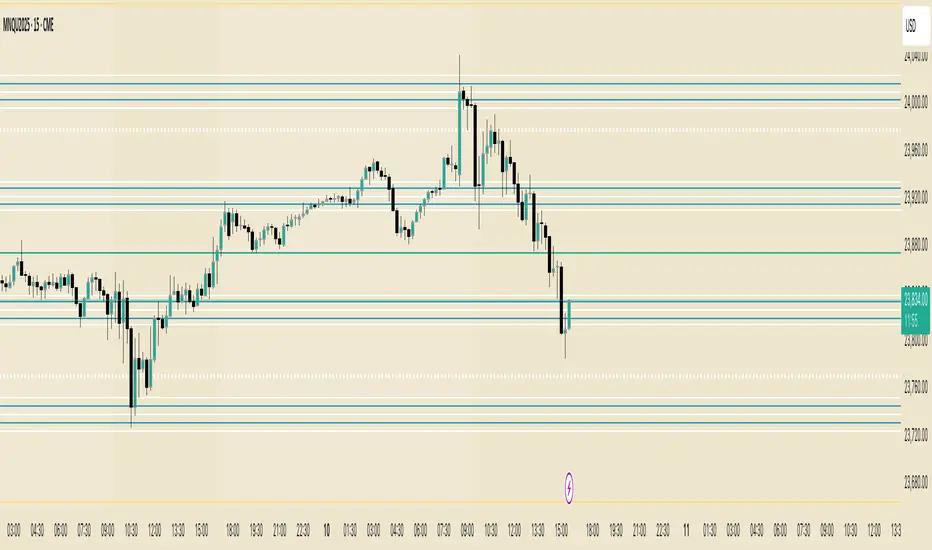 - The indicator also auto detects if you are on NQ or ES.