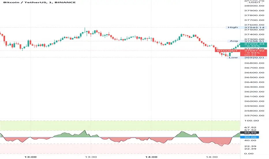 This is a variety of RSI based on the distance from the MA. It calculates the difference between price and a user defined EMA, then it calculates the RSI for the values obtained.