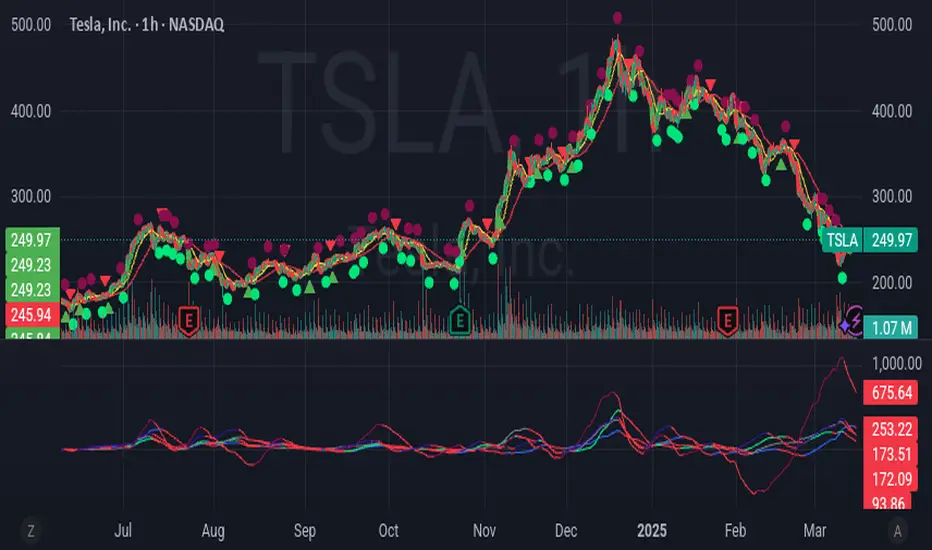 In essence, this script visualizes how the current symbol's price movement correlates with the price movements of these major indices and stocks over the defined historical period. The color change on the plots indicates whether the covariance has increased compared to 10 bars ago, potentially suggesting a strengthening or weakening of the correlation. The display setting for DJI and SPX means their covariance values will only be visible in the data window panel at the bottom of the TradingView chart, not as lines directly overlaid on the price action.
