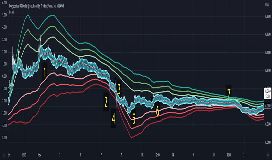 This indicator has an original, unique ability to view the trend of bands in a substantially larger overview when zoomed out.