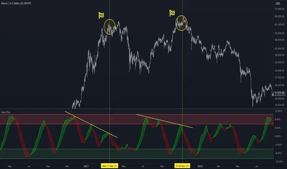 Aeon Flux has a track record of detecting higher timeframe macro distribution on the BTC Index.