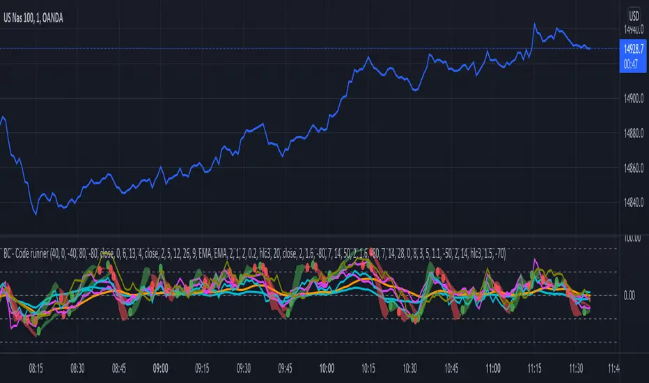 The Code Runner is a hybrid indicator that leverages other pre-configured, integrated open-source algorithms to help traders spot regular and continuation divergences.