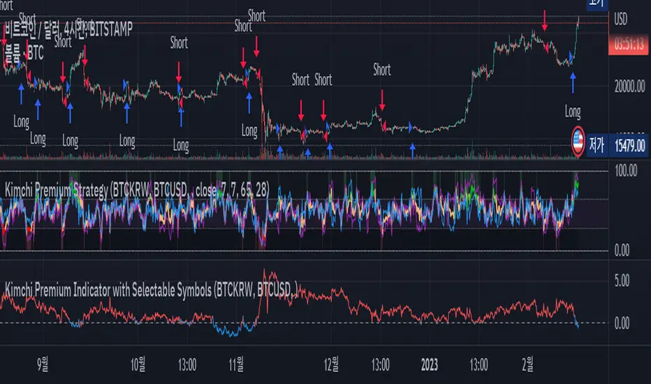 This strategy is based on the Korea Premium, also known as the “Kimchi Premium,” which indicates how expensive or cheap the price of Bitcoin in Korean Won on a Bitcoin exchange in South Korea is relative to the price of Bitcoin being traded in USD or Tether. Inverse Kimchi Premium RSI was newly defined to create a strategy with Kimchi Premium. Assuming that the larger the kimchi premium, the greater the individual's purchasing power. In this case, if the Inverse Kimchi Premium RSI falls and closes the candle below the bear level, a short is triggered. Long is the opposite.