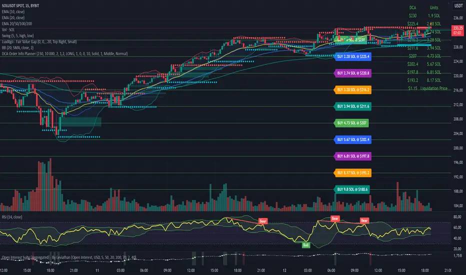 This script is a Dollar-Cost Averaging (DCA) order planner designed for SPOT, LONG, and SHORT markets. It automatically calculates the optimal price levels for your orders based on configurable parameters, while also considering leverage and liquidation price.