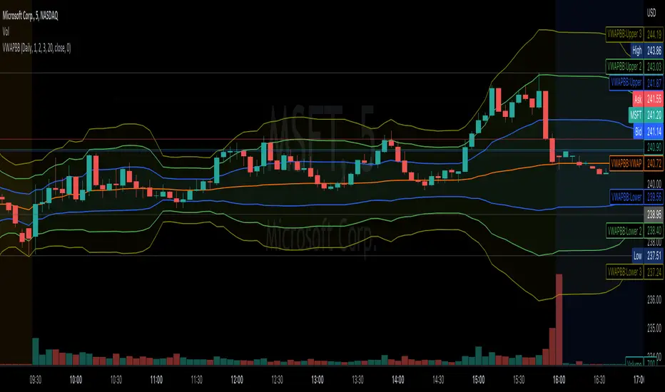 This aids in finding conditions of entry standard to vwap, but the bands could give key areas of focus for entries and exits better than standard bollinger bands or vwap bands.