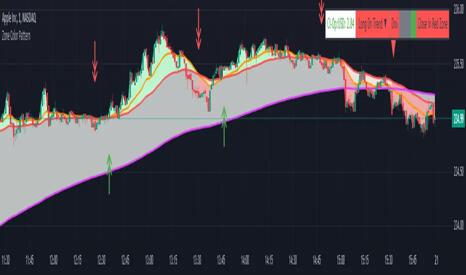 Zone Color Pattern indicator is based on 3 moving averages. Long term, Medium term and Short Term.By default they are 200, 50 and 20.