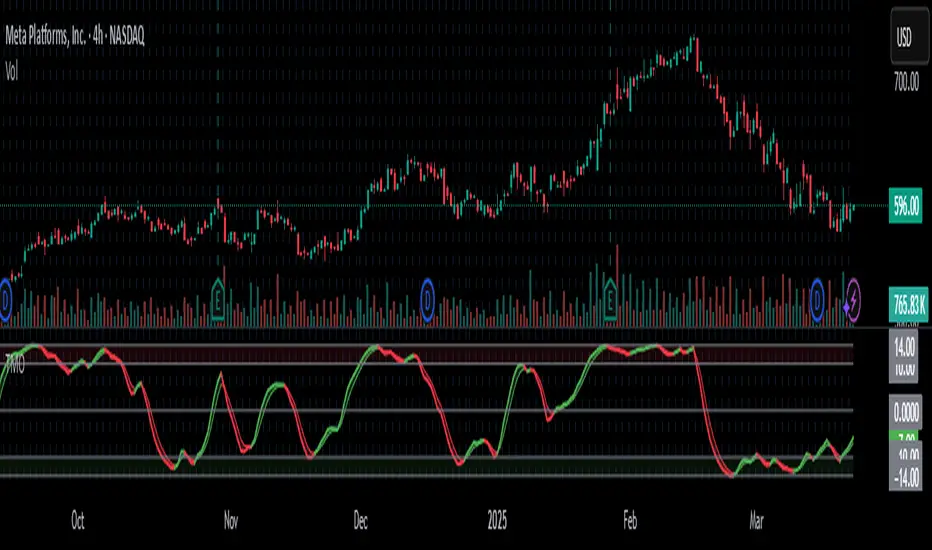 The True Momentum Oscillator (TMO) is a momentum-based technical indicator designed to identify trend direction, trend strength, and potential reversal points in the market. It's particularly useful for spotting overbought and oversold conditions, aiding traders in timing their entries and exits.