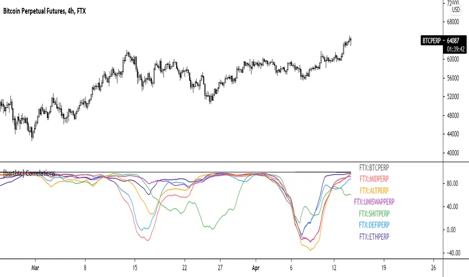 - By default, it tracks the correlation of FTX basket indexes with BTC (you can customise by changing the the assets in settings)